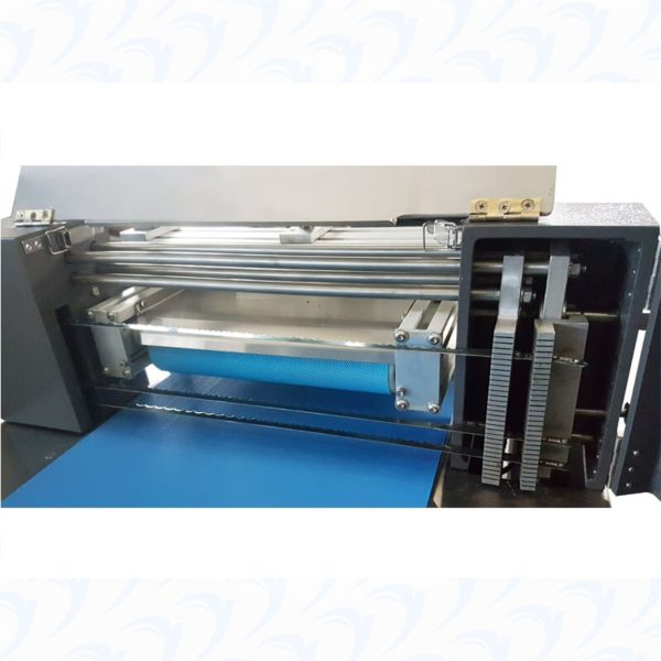 Designed for medium and small enterprisers. Thickness of slice can be adjusted manually. Upper pressure belt can be adjusted manually. Upper and lower belt speed can be adjusted. Working silent. Completely made of stainless steel.